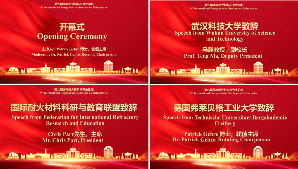At the opening ceremony, Professor Ma Teng, the vice president of our school, delivered a welcoming speech. Mr. Chris Parr, the president of Federation for International Refractory Research and Education, and Professor Patrick Gehre, the rotating chairperson, delivered speeches respectively.
