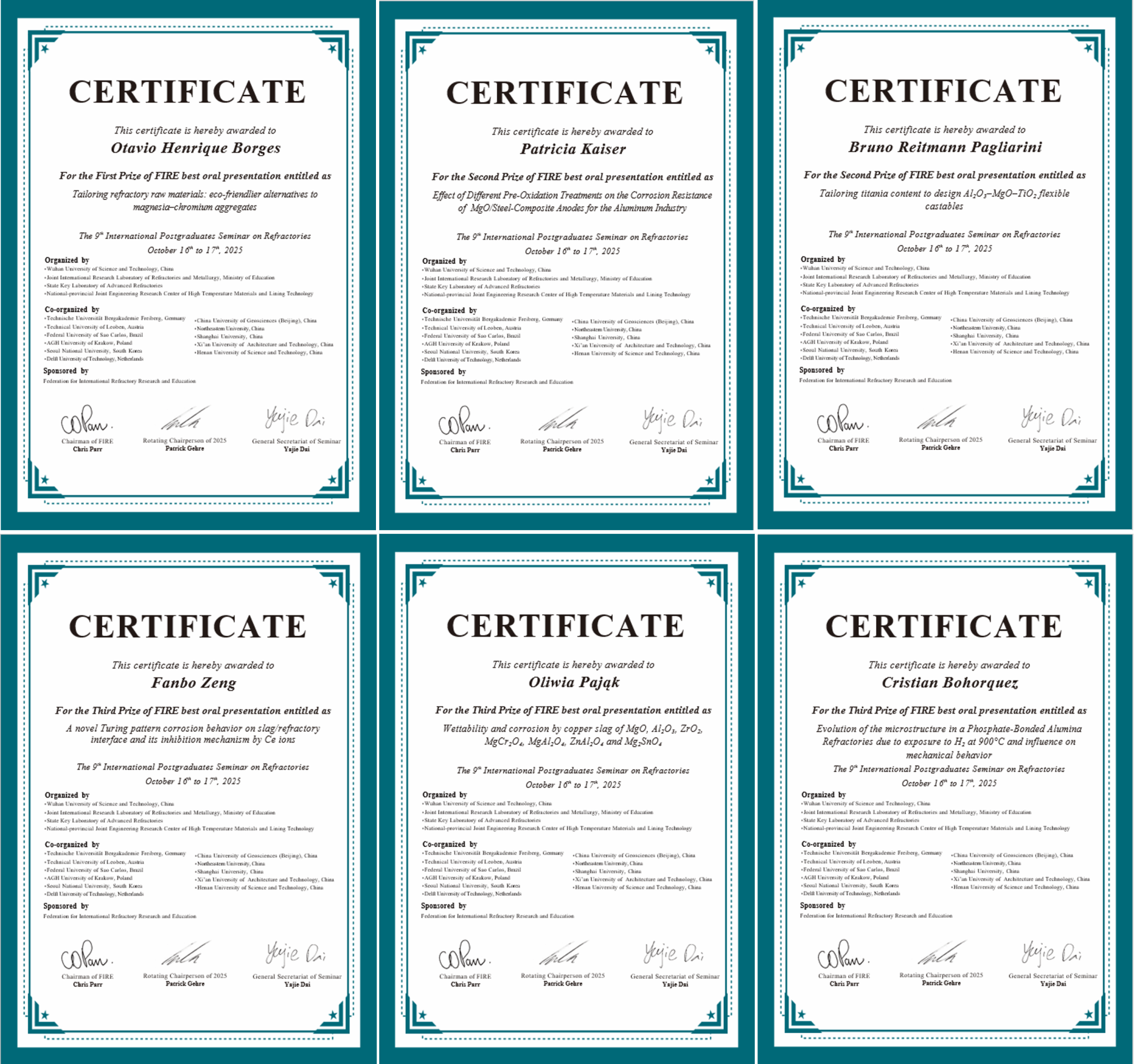 From October 16th to 17th, the 9th International Postgraduate Seminar on Refractories was successfully held. The seminar was sponsored by State Key Laboratory of Advanced Refractories and Joint International Research Laboratory of Refractories and Metallurgy of Wuhan University of Science and Technology. This seminar was Support by Federation for International Refractory Research and Education (FIRE) and established the "Best Oral Presentation Award", further enhancing the academic level and international participation of the seminar. About 200 experts, scholars and postgraduate representatives from 9 countries around the world participated in the conference online and had in-depth exchanges on the cutting-edge of refractory materials science and technology.